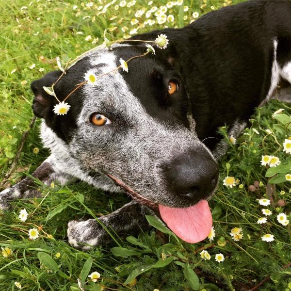 9) Maggie and her very spiffy pink harness with flower accessory. Squee...