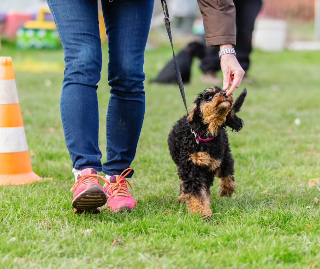 It is important to keep in mind that progress will depend on your dog and how long they have been practising and gaining success with the previous behaviour. For example, you'll see faster progress with a 7-month-old puppy than an 8-year-old dog.
