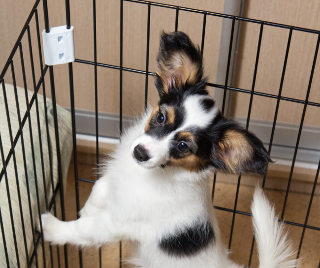 While your puppy is still learning, limit their access to your home by placing them in a crate or enclosed playpen if you can't keep an eye on them. Allowing a puppy to have free reign of your house while you are not able to keep a close eye on them is not advisable. Not only can they destroy or ingest something, but if you are not watching for signs that they need to go to the toilet and proactively take them out, they may also learn that it's acceptable to go to the toilet in the house.